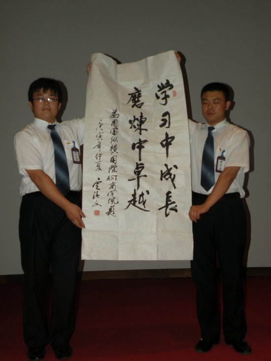 上圖:賈清文理事長為國際·AST商學院題詞