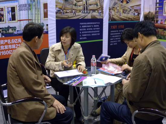 上圖:國富縱橫策劃部項目經理劉婷碩士為客戶詳細介紹華強家居廣場
